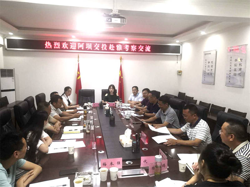 8月11日至12日,四川阿壩交通建設(shè)投資有限責(zé)任公司黨委書記、董事長李毅,黨委副書記、總經(jīng)理詹永康率隊到雅安考察交流交通建設(shè)相關(guān)事宜。雅安市交通運(yùn)輸局黨組書記、局長余云峰,黨組成員、副局長趙飛勇;雅安交建集團(tuán)黨委書記、董事長漆家華,黨委副書記、總經(jīng)理羅倫全等先后陪同考察、座談交流。