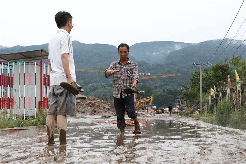 8月18日下午,在草壩青衣江大橋建設(shè)現(xiàn)場(chǎng),項(xiàng)目部外的院壩、工地附近的道路,均覆蓋著厚厚的淤泥!白蛲砭o急撤離,我的車停在河邊,也沒(méi)來(lái)得及開(kāi)走,現(xiàn)在都沒(méi)找到!币荒樒v的李勁松告訴記者,雖然洪水漲勢(shì)迅猛,但他們撤離之前,提前通知了電力部門斷電,否則若有人再次靠近洪水,將面臨觸電的風(fēng)險(xiǎn)。