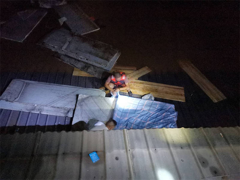 “感謝3名值班人員及時(shí)打電話通知我,否則后果不堪設(shè)想!焙(jiǎn)敬奎說(shuō),回想起昨晚的情形,心里還是有些后怕。當(dāng)時(shí),他接到值班人員電話后,發(fā)現(xiàn)門衛(wèi)室外的洪水已經(jīng)逼近脖子,無(wú)法順利撤離,洪水漲勢(shì)又快,不一會(huì)兒,他只得爬上門衛(wèi)室頂端才能避免被水淹沒(méi)。后來(lái),洪水沖來(lái)了一棵樹(shù),簡(jiǎn)敬奎借助這棵樹(shù)慢慢轉(zhuǎn)移到了附近一棵較高大的樹(shù)上繼續(xù)躲避,直至黃志和方華軍前來(lái)營(yíng)救。