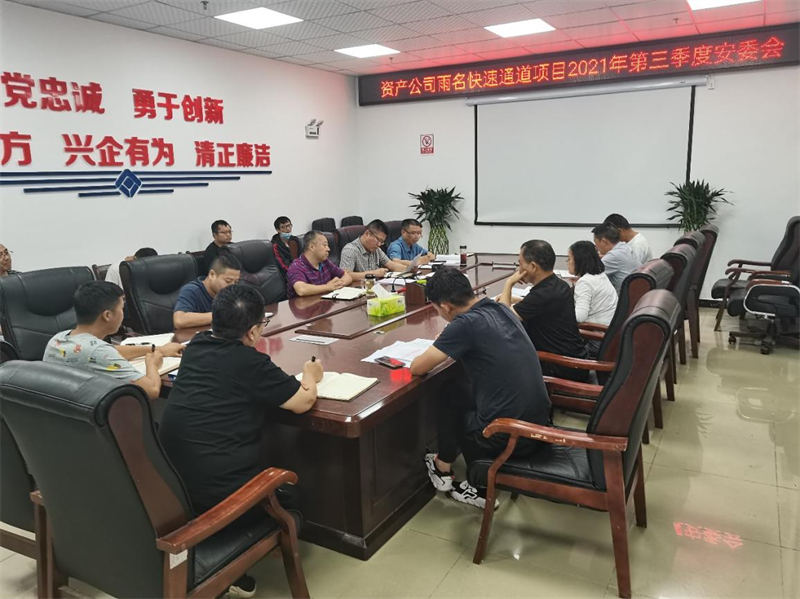 9月9日,資產(chǎn)公司召開雨名快速通道項目2021年第三季度安委會,對雨名快速通道項目第三季度安全工作情況進行總結(jié),對四季度安全工作進行安排布置。資產(chǎn)公司經(jīng)營班子成員及部門負責(zé)人,項目總監(jiān)辦總監(jiān)理工程師、安全監(jiān)理工程師、各施工項目部項目及安全負責(zé)人參加會議。