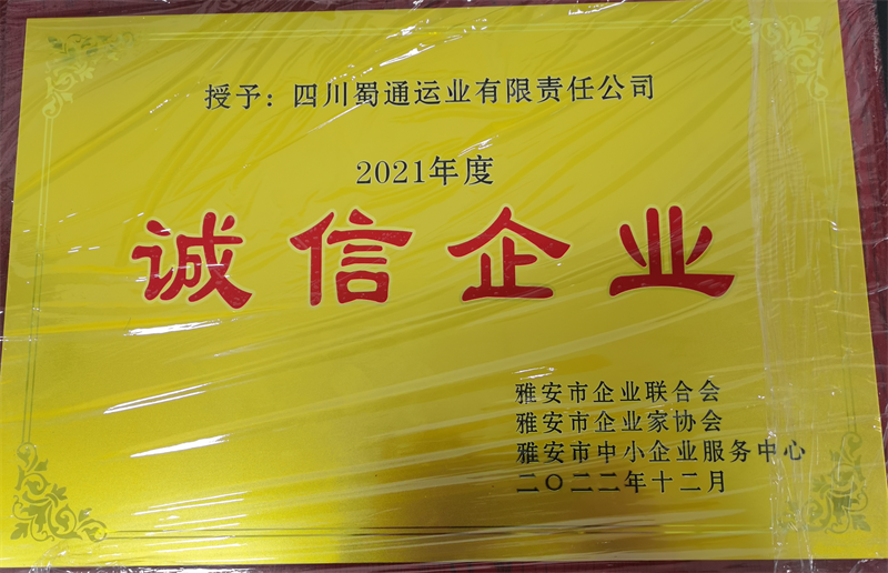 近日,蜀通公司被雅安市企業(yè)聯(lián)合會(huì)、雅安市企業(yè)家協(xié)會(huì)、雅安市中小企業(yè)服務(wù)中心授予“雅安市2021年度誠(chéng)信企業(yè)”榮譽(yù)稱號(hào)。