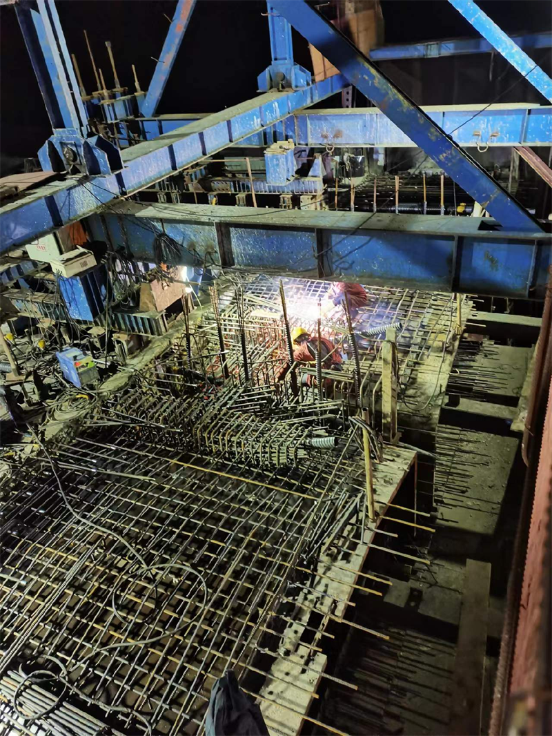 為確保項目高效推進(jìn),交建路橋搶抓黃金工期,共投入14臺設(shè)備、70余人,加班加點、挑燈夜戰(zhàn)綁扎K3+415成雅高速跨線大橋邊跨現(xiàn)澆段鋼筋。工地現(xiàn)場燈火通明,機械轟鳴,施工人員揮汗如雨,一派繁忙景象,工程建設(shè)井然有序。此次搶工,為后續(xù)項目施工積蓄了發(fā)展動能,同時也保障了項目總體目標(biāo)的實現(xiàn)。
