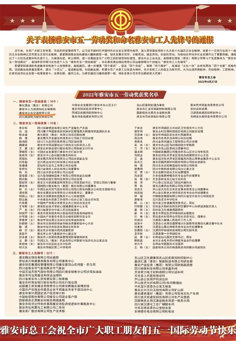 4月28日,市總工會召開2022年雅安市慶!拔逡弧眹H勞動節(jié)暨表揚大會,交建集團(tuán)雅安市公共交通有限公司榮獲全市五一勞動獎狀殊榮。