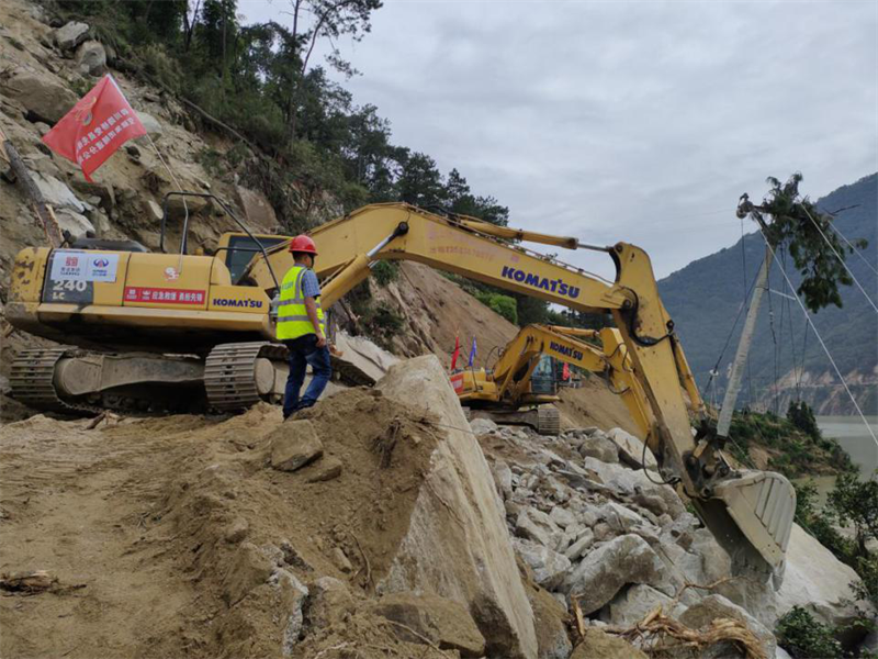 黨委書記、董事長漆家華,黨委副書記、總經(jīng)理羅倫全,黨委副書記張萬清陸續(xù)前往石棉,直插道路搶險一線,實地了解受災(zāi)情況,靠前指揮搶通保通,看望慰問一線員工。副總經(jīng)理鐘焱宇至始至終堅守搶險現(xiàn)場,勘察路況災(zāi)情,會商搶險方案,協(xié)調(diào)組織搶險保通。截至9月13日,交建集團累計派出搶通力量170余人,挖掘機、拖車、裝載機、運輸車、無人機等機具70余臺套,先后完成G108線石棉縣至菩薩崗段12個坍方點、X067先新桃縣道16個坍方點搶通任務(wù),清理坍方7萬余方,改線X067縣道桃壩處繞行路43余公里;搶通省道217線龍頭石隧道至王崗坪段道路20余公里,清方14萬余方;搶通草科鄉(xiāng)和坪村至毛坪通組道路,為極重災(zāi)村打通一條重要生命通道。同時,出動應(yīng)急運輸保障車45臺次、運輸物質(zhì)22趟次,轉(zhuǎn)運災(zāi)區(qū)搶險救援人員、組織群眾疏散840余人,組織出租車護送防疫人員和核酸樣本轉(zhuǎn)運1140余趟次。