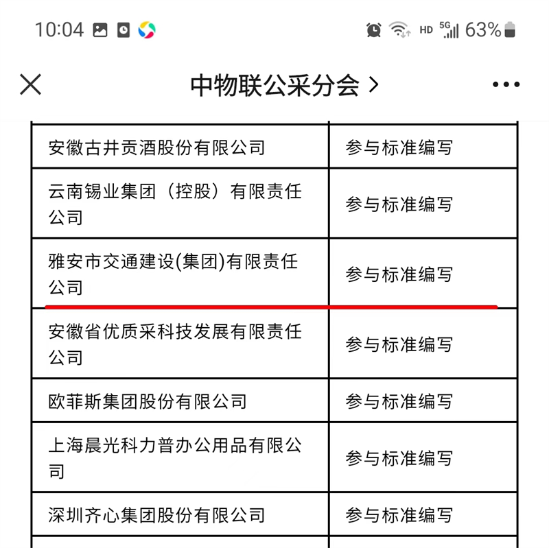 全國唯一 雅安市交通(建設(shè))集團(tuán)有限公司作為地方國企參與《國有企業(yè)采購 操作規(guī)范》團(tuán)體標(biāo)準(zhǔn)編寫