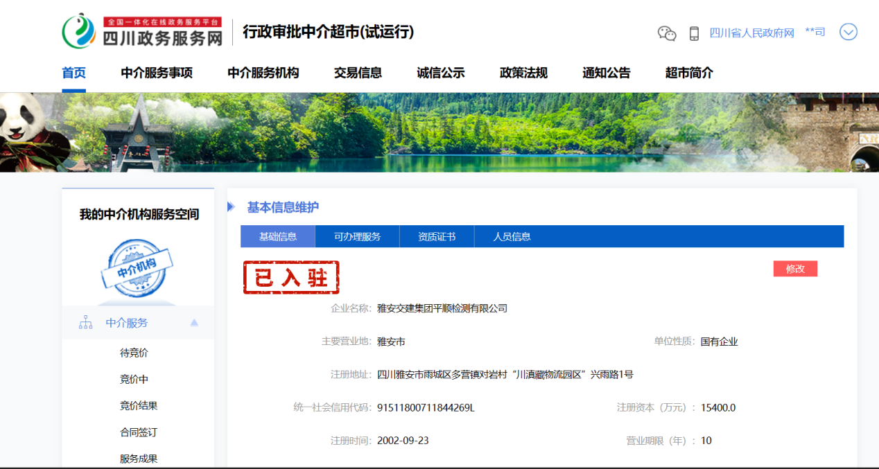 為進(jìn)一步深化“放管服”便民服務(wù),加強(qiáng)行政審批中介服務(wù)事項(xiàng)管理,規(guī)范中介服務(wù)行為,經(jīng)雅安市雨城區(qū)運(yùn)管所資格審核通過,近日,雅安交建集團(tuán)平順檢測有限公司正式入駐四川政務(wù)服務(wù)網(wǎng)行政審批中介超市。
