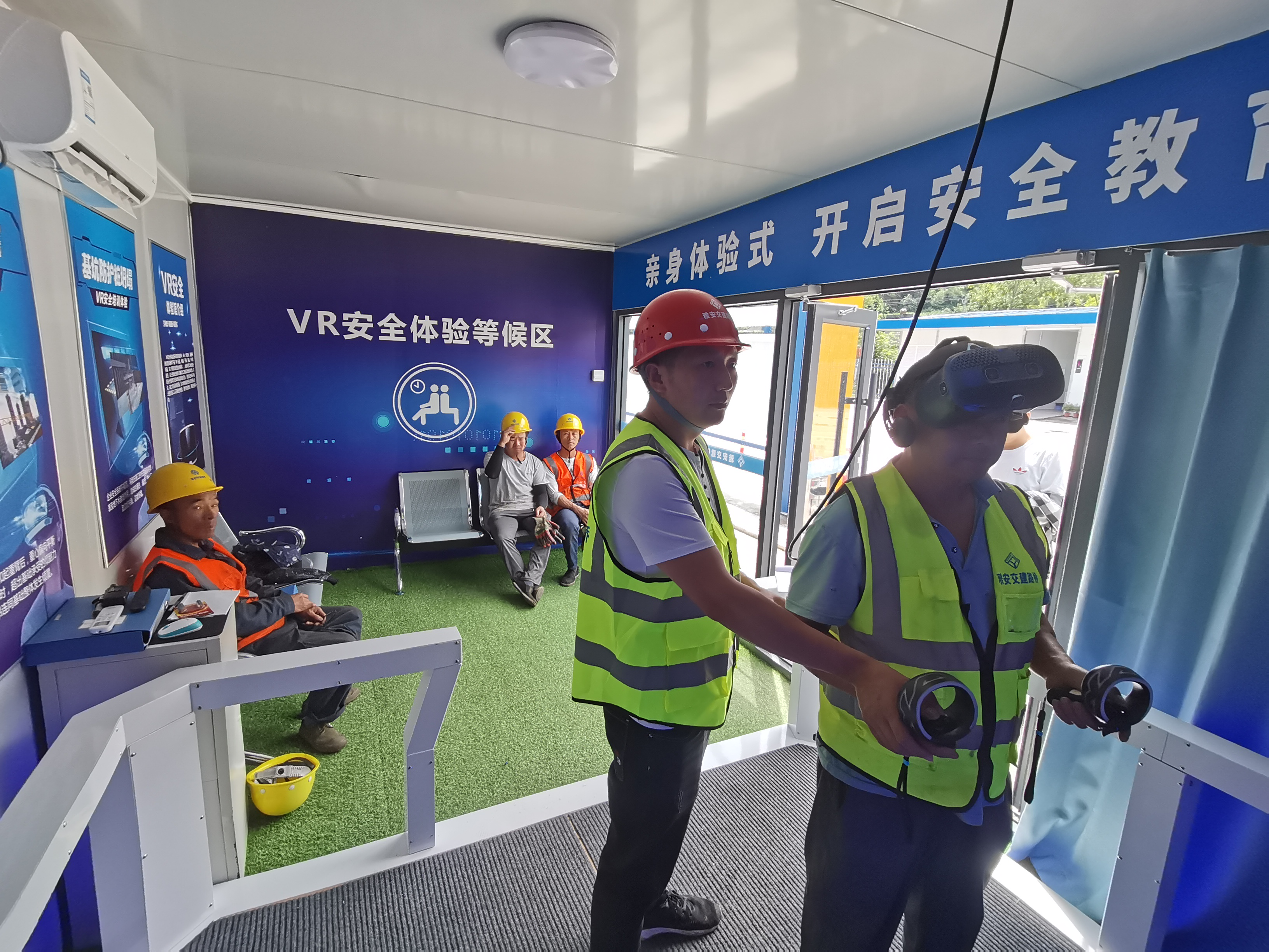 針對各在建項(xiàng)目勞務(wù)施工人員占大多數(shù)且安全意識薄弱、自我保護(hù)意識不足實(shí)際,路橋公司結(jié)合開展“安全生產(chǎn)月”系列活動,分批次組織各在建項(xiàng)目作業(yè)人員進(jìn)行安全VR體驗(yàn)培訓(xùn),利用VR技術(shù)打造1:1的虛擬培訓(xùn)場景,將抽象的理論知識變得直觀形象,受訓(xùn)者以第一視角“親歷”高空作業(yè)、高空塔吊、機(jī)械操作等危險(xiǎn)場景,帶來高度真實(shí)感的沉浸式體驗(yàn),切實(shí)讓工人在VR培訓(xùn)中通過視覺、聽覺、觸覺反饋,形成強(qiáng)烈的心理震懾作用,讓現(xiàn)場施工作業(yè)人員最大限度增強(qiáng)安全防范意識。