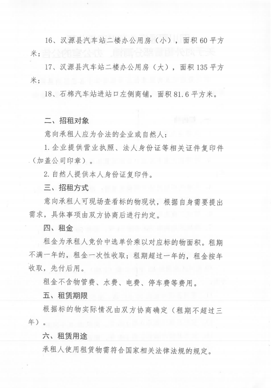 四川蜀通運業(yè)有限責(zé)任公司關(guān)于對外租賃部分門面、辦公室資產(chǎn)的公告附件