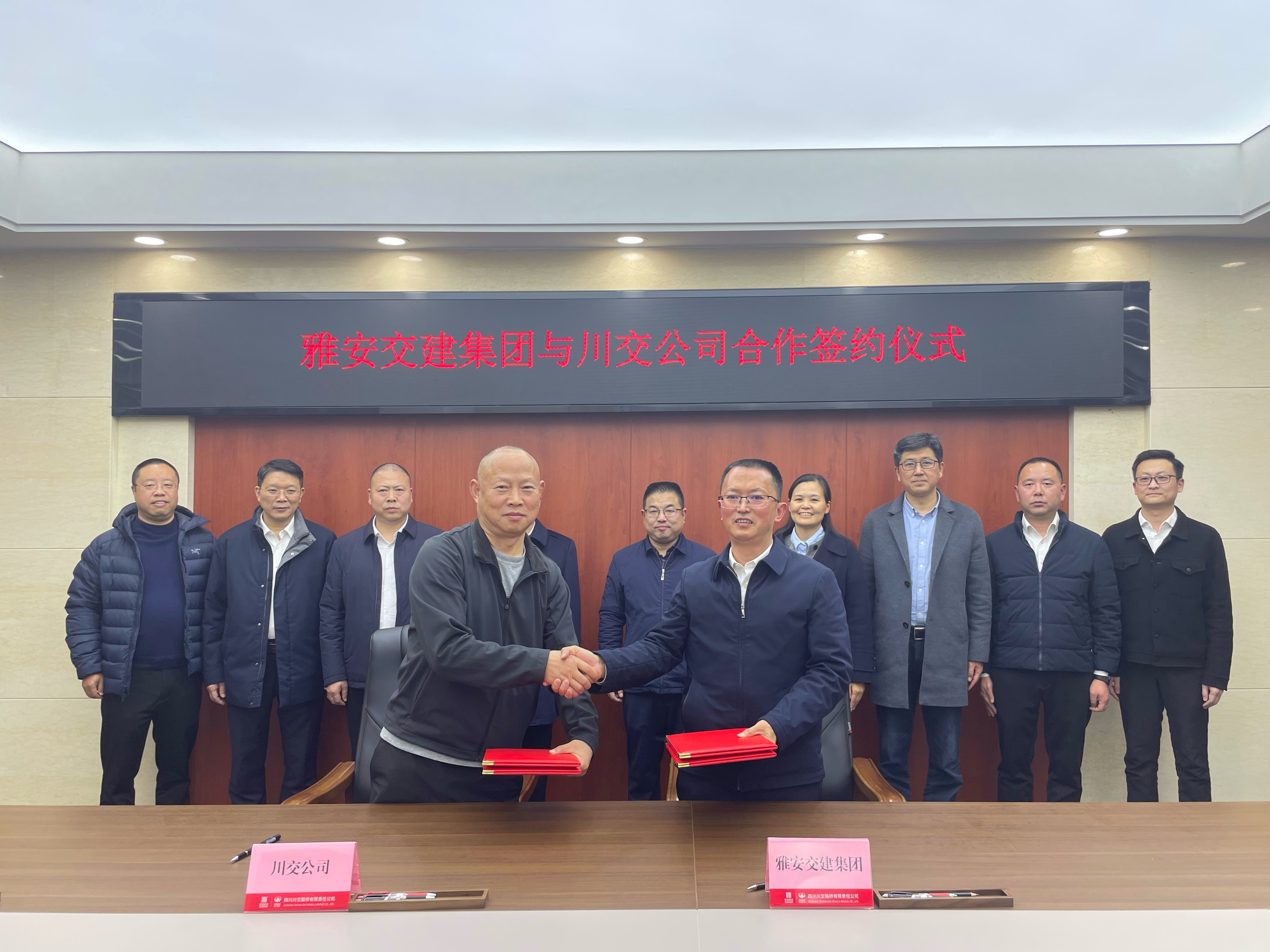 雅安交建集團(tuán)黨委委員、副總經(jīng)理丁春,辦公室、投資發(fā)展部、合規(guī)部、康藏路橋公司、項(xiàng)目管理公司主要負(fù)責(zé)人;川交公司黨委副書(shū)記、總經(jīng)理魯正偉,副總經(jīng)理羅德高,市場(chǎng)開(kāi)發(fā)部、辦公室、工程管理部、內(nèi)控審計(jì)法務(wù)部、橋梁分公司主要負(fù)責(zé)人參與座談交流并見(jiàn)證合作協(xié)議簽署。