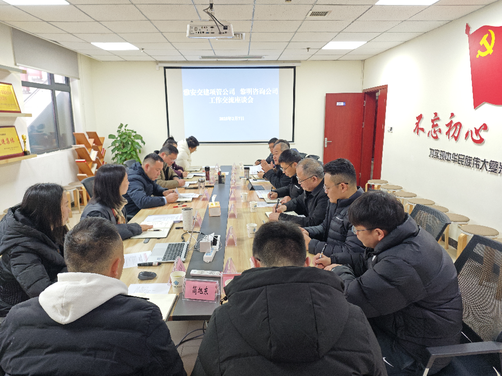 2月7日上午,城投黎明咨詢公司董事長(zhǎng)鐘鳴率隊(duì)到訪交建項(xiàng)管公司臺(tái)站座談交流。