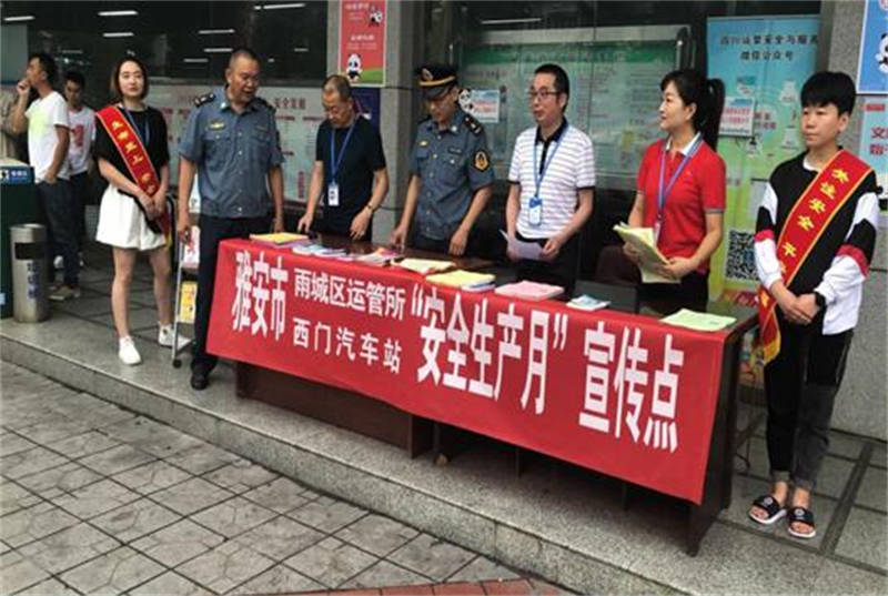 6月14日,蜀通公司雅安西門汽車站、雅安汽車站分別在站前廣場(chǎng)舉行了“防風(fēng)險(xiǎn)、除隱患,遏事故”為主題的安全宣傳咨詢活動(dòng)。西門車站精心準(zhǔn)備了宣傳片12個(gè)、專欄2個(gè)、海報(bào)7幅、LED橫幅12個(gè)等安全宣傳資料,現(xiàn)場(chǎng)發(fā)放各種安全宣傳資料1000余份;雅安汽車客運(yùn)站設(shè)置安全專欄9個(gè)、LED標(biāo)語(yǔ)12幅、宣傳視頻10個(gè)、發(fā)放宣傳資料800余份。宣傳內(nèi)容涵蓋了安全生產(chǎn)法律法規(guī)、道路旅客運(yùn)輸安全知識(shí)、公民預(yù)防恐怖活動(dòng)行為指引、客運(yùn)行業(yè)打非治違、客運(yùn)班線實(shí)名制售檢票、安全帶的重要性、乘車安全常識(shí)、公共場(chǎng)所如何預(yù)防踩踏事故等安全知識(shí)和技能以及“三不進(jìn)站六不出站”管理規(guī)定及蜀通官方微信購(gòu)票平臺(tái)等。