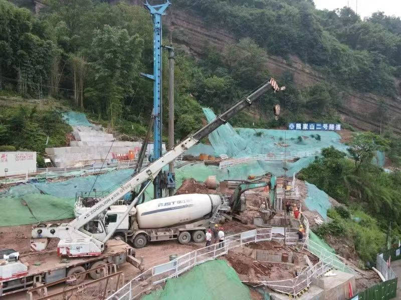 “咚咚咚……”在雨城區(qū)多營(yíng)鎮(zhèn)五營(yíng)村熊家山二號(hào)隧道出口端空地上,旋挖鉆機(jī)開(kāi)足馬力,朝著地層深處掘進(jìn),不斷發(fā)出富有節(jié)奏的聲響!懊總(gè)樁基有二十多米深!眹(guó)道318線名山區(qū)黑竹(成都界)至雨城區(qū)多營(yíng)段改建工程項(xiàng)目副經(jīng)理林洲,每天都要到各施工點(diǎn)位查看進(jìn)度。他說(shuō),熊家山二號(hào)隧道附近山體為順層帶,易產(chǎn)生滑坡,進(jìn)洞施工前需要先在洞外打抗滑樁,以確保施工安全,目前還在開(kāi)展剩下3根抗滑樁的施工。