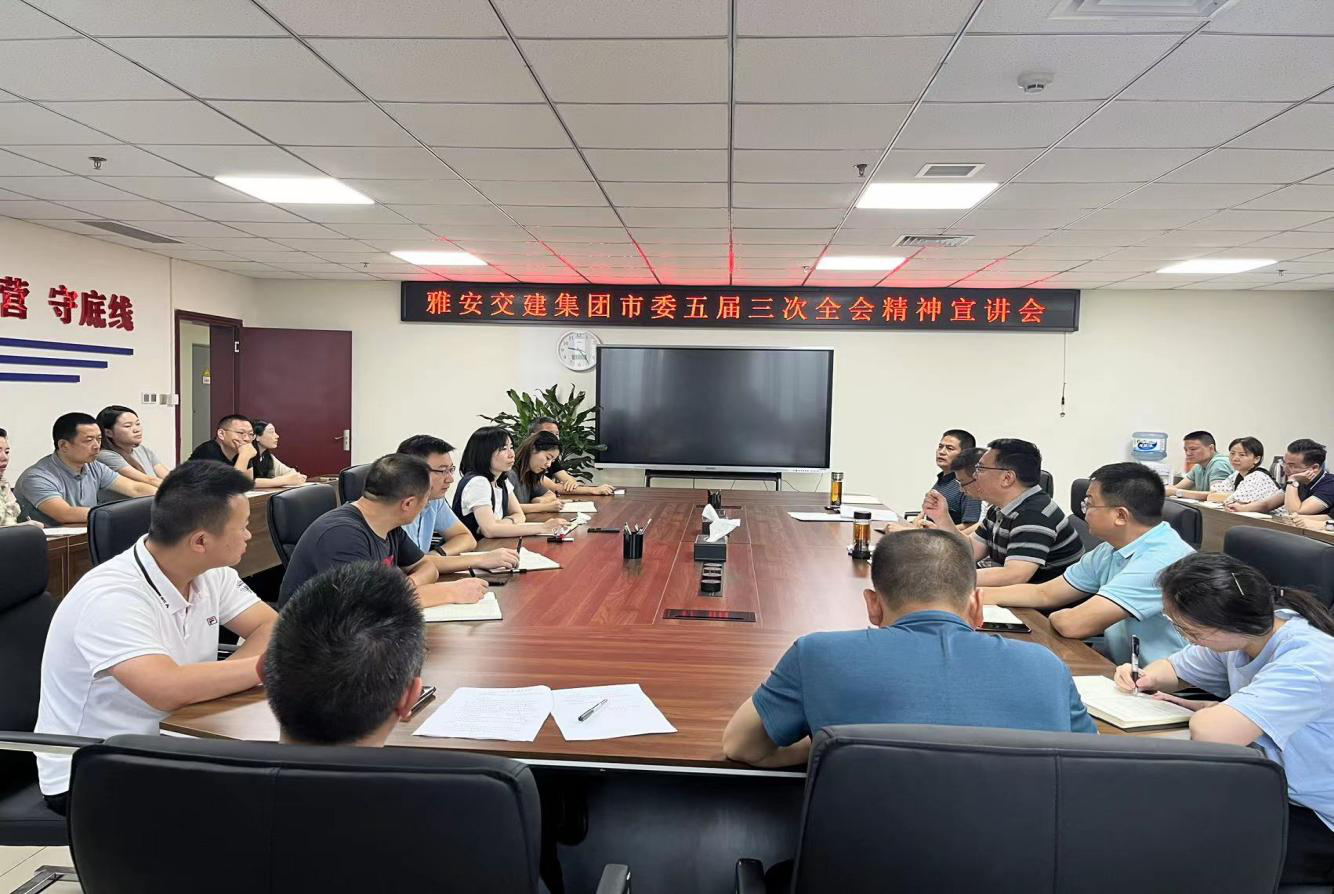 7月13日,雅安交建集團(tuán)黨委召開(kāi)專題宣講會(huì),傳達(dá)學(xué)習(xí)市委五屆三次全會(huì)精神,雅安交建集團(tuán)黨委書(shū)記、董事長(zhǎng)漆家華作主題宣講,集團(tuán)公司領(lǐng)導(dǎo)班子成員、下屬各黨組織書(shū)記、機(jī)關(guān)全體黨員參加。