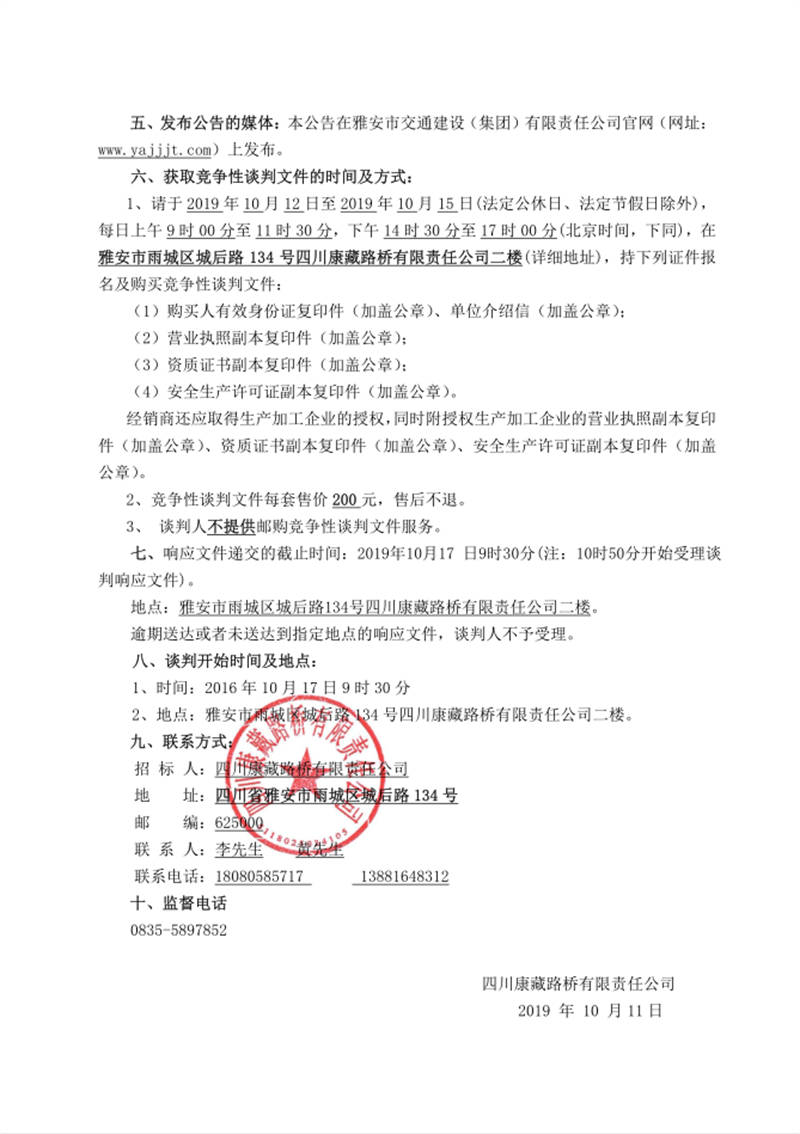 四川康藏路橋有限責任公司國道351線磽磧至夾金山段路面改造工程防護網采購競爭性談判公告