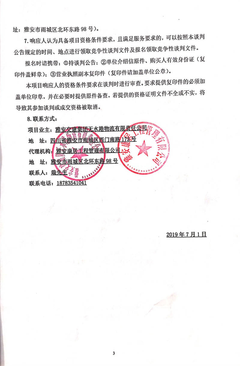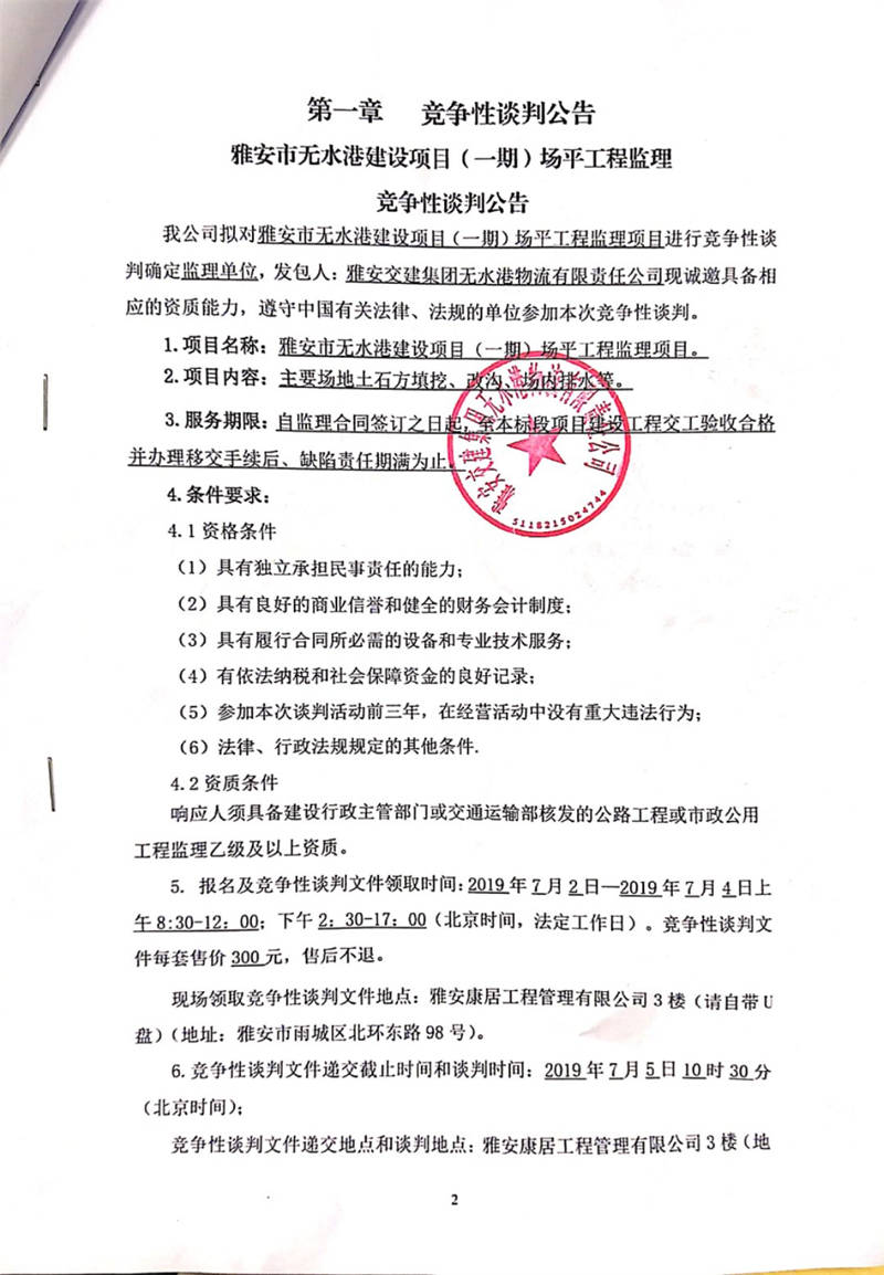 雅安交建集團(tuán)無水港物流有限責(zé)任公司雅安市無水港建設(shè)項目(一期)場平工程監(jiān)理競爭性談判公告