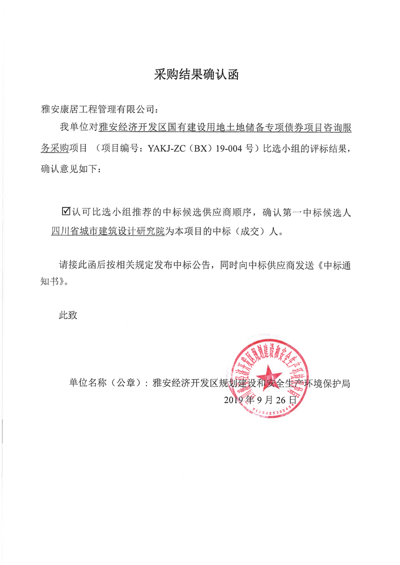 雅安經(jīng)濟(jì)開發(fā)區(qū)國有建設(shè)用地土地儲(chǔ)備專項(xiàng)債券項(xiàng)目咨詢服務(wù)采購比選結(jié)果公示