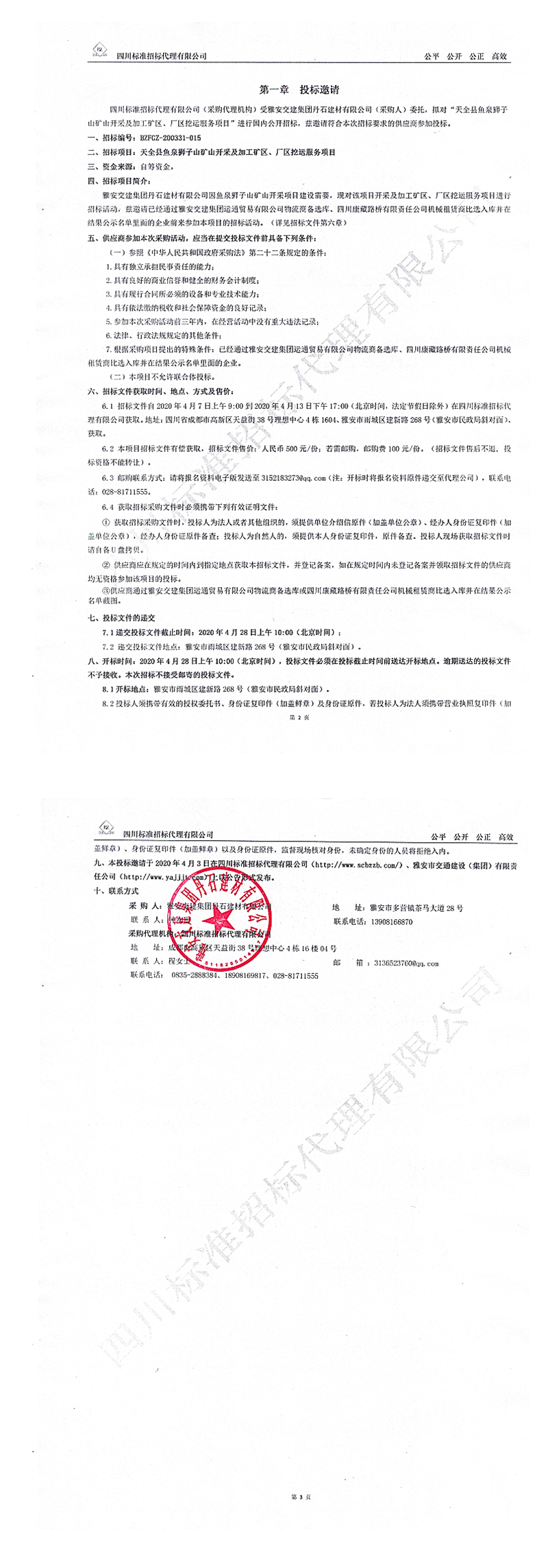 雅安交建集團(tuán)丹石建材有限公司天全縣魚泉獅子山礦山開采及加工礦區(qū)、廠區(qū)挖運服務(wù)項目招標(biāo)公告