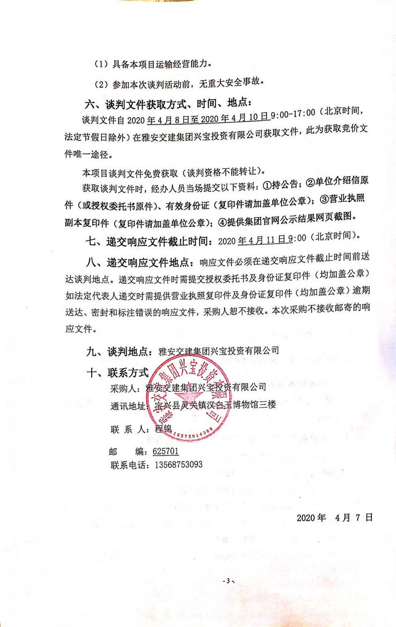 雅安交建集團(tuán)興寶投資有限公司靈關(guān)鎮(zhèn)代碑寺物流園土地整理棄渣運輸采購項目競爭性談判公告