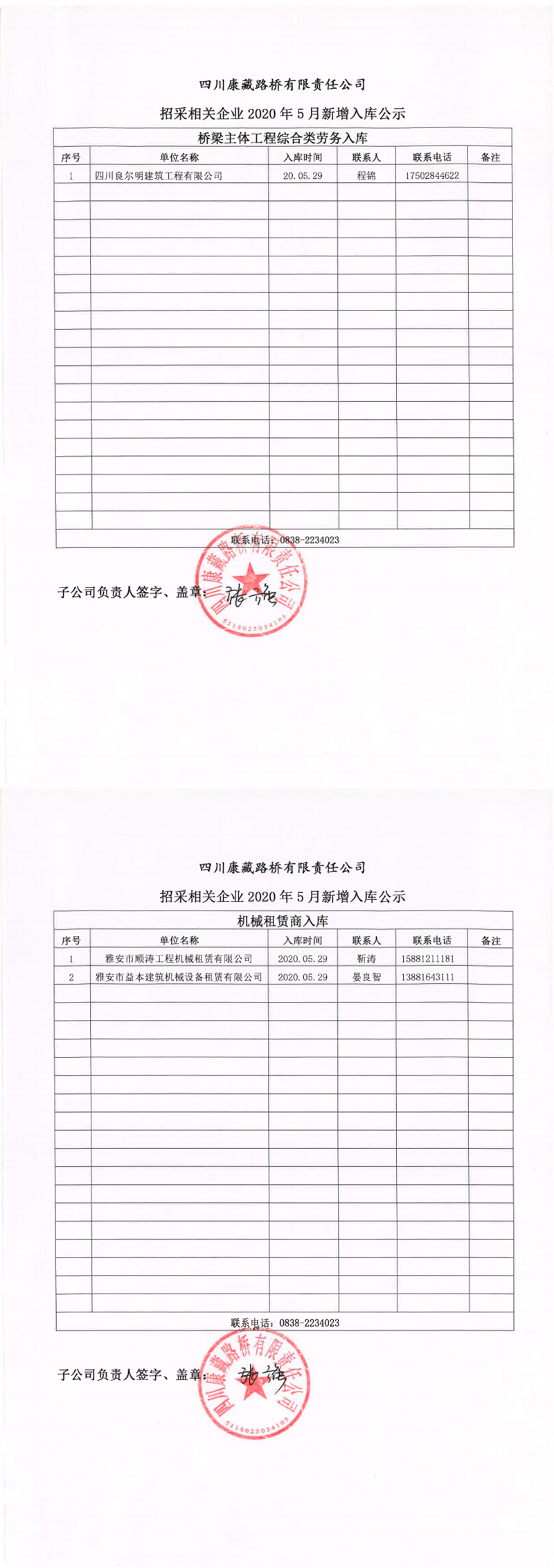 四川康藏路橋有限責(zé)任公司招采相關(guān)企業(yè)2020年5月新增入庫公示