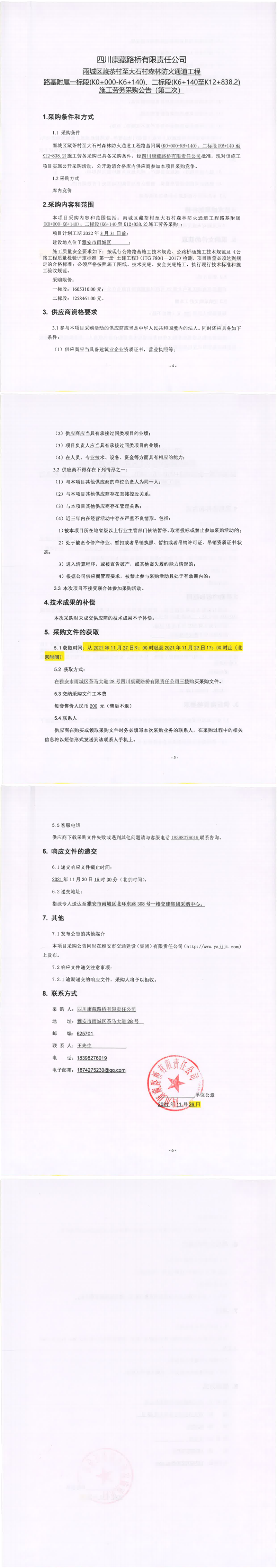 四川康藏路橋有限責任公司雨城區(qū)藏茶村至大石村森林防火通道工程路基附屬一標段(K0+000-K6+140)、二標段(K6+140至K12+838.2)施工勞務(wù)采購公告(第二次)