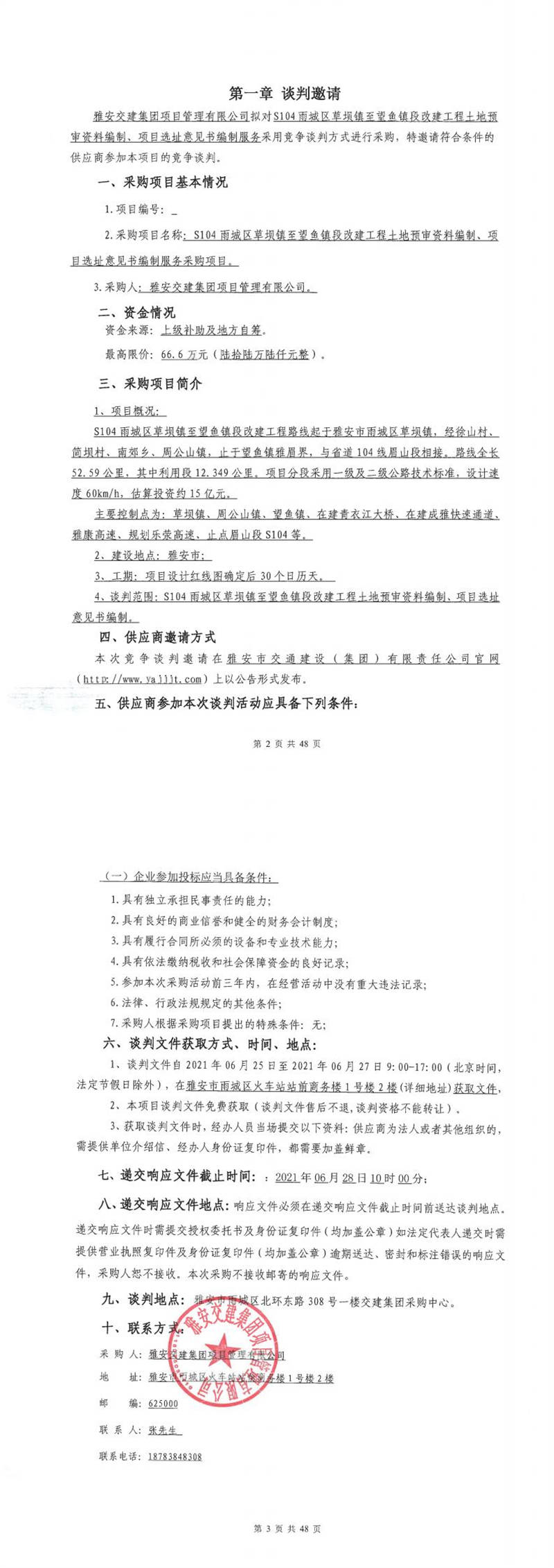雅安交建集團(tuán)項目管理有限公司S104雨城區(qū)草壩鎮(zhèn)至望魚鎮(zhèn)段改建工程土地預(yù)審資料編制、項目選址意見書編制服務(wù)采購項目