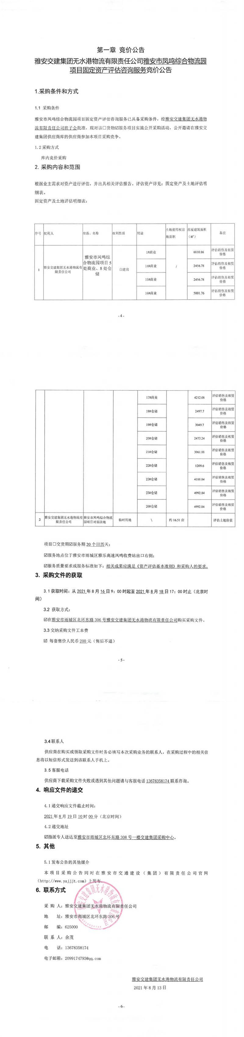雅安交建集團(tuán)無水港物流有限責(zé)任公司雅安市鳳鳴綜合物流園項目固定資產(chǎn)評估咨詢服務(wù)競價公告
