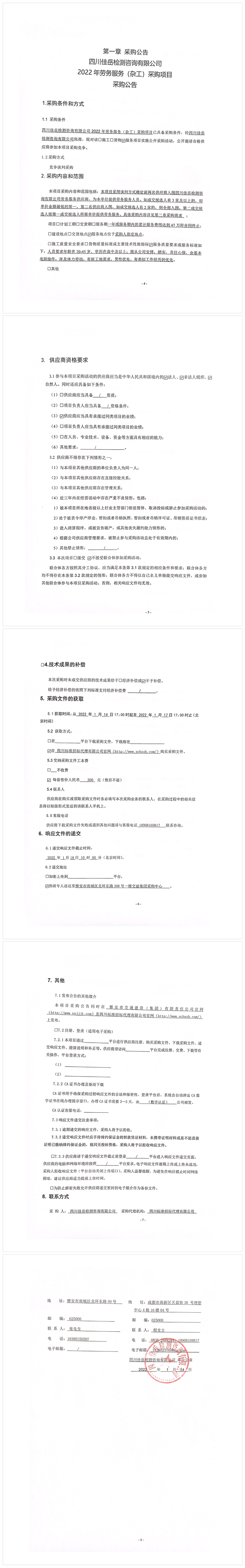 四川佳岳檢測咨詢有限公司2022年勞務(wù)服務(wù)(雜工)采購項(xiàng)目采購公告