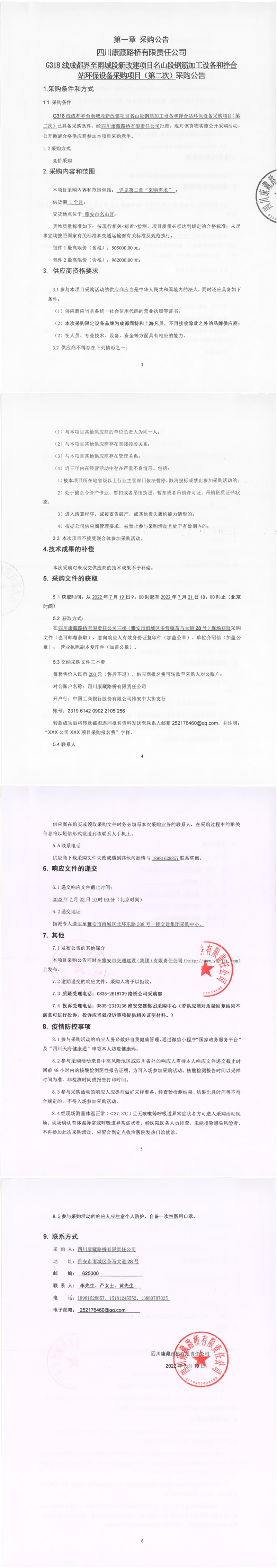 四川康藏路橋有限責(zé)任公司G318線成都界至雨城段新改建項(xiàng)目名山段鋼筋加工設(shè)備和拌合站環(huán)保設(shè)備采購項(xiàng)目(第二次)采購公告