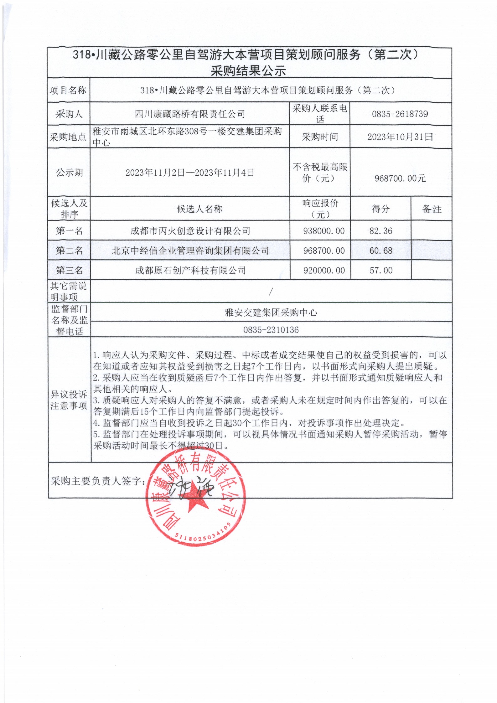 四川康藏路橋有限責(zé)任公司 318•川藏公路零公里自駕游大本營項(xiàng)目策劃顧問服務(wù)(第二次)采購結(jié)果公示