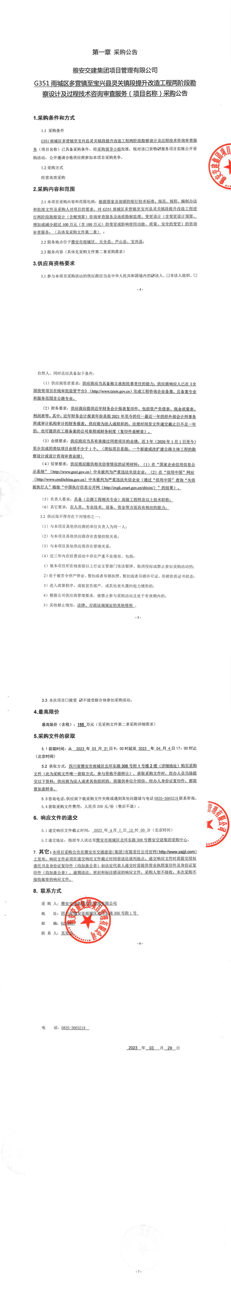 雅安交建集團(tuán)項(xiàng)目管理有限公司G351雨城區(qū)多營(yíng)鎮(zhèn)至寶興縣靈關(guān)鎮(zhèn)段提升改造工程兩階段勘察設(shè)計(jì)及過程技術(shù)咨詢審查服務(wù)(項(xiàng)目名稱)采購(gòu)公告