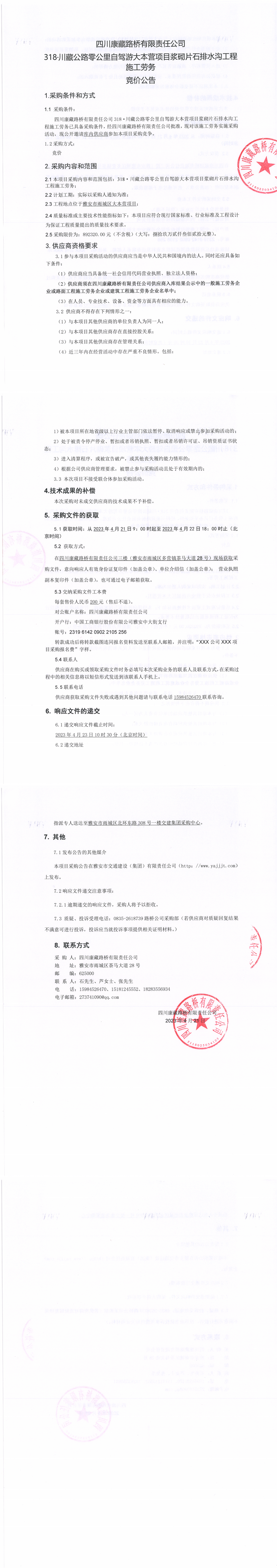 四川康藏路橋有限責(zé)任公司318·川藏公路零公里自駕游大本營項(xiàng)目漿砌片石排水溝工程施工勞務(wù)公告