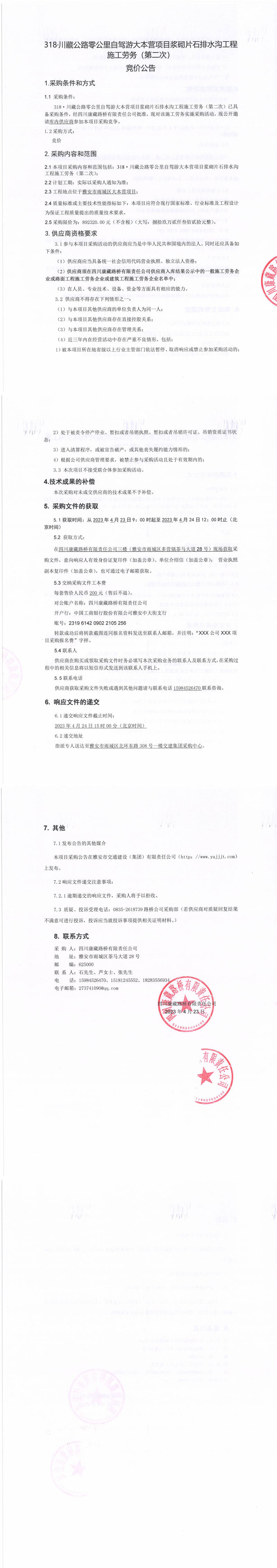 四川康藏路橋有限責任公司318·川藏公路零公里自駕游大本營項目漿砌片石排水溝工程施工勞務(第二次)采購公告