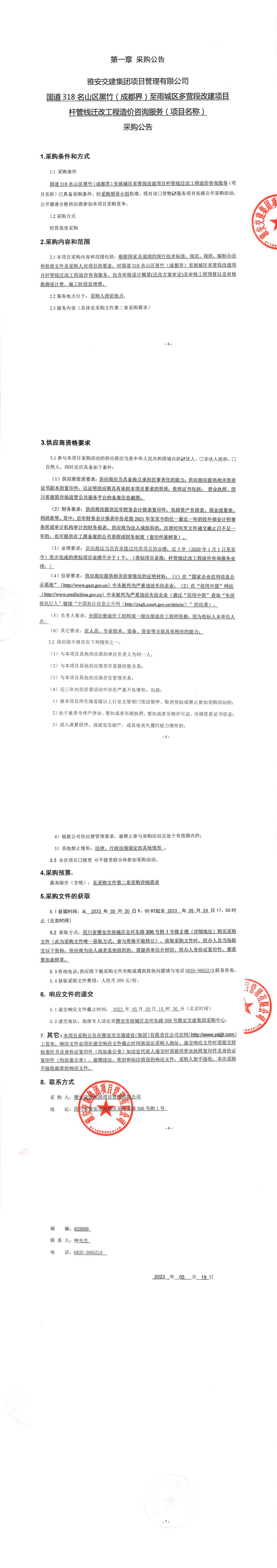 雅安交建集團(tuán)項(xiàng)目管理有限公司國(guó)道318名山區(qū)黑竹(成都界)至雨城區(qū)多營(yíng)段改建項(xiàng)目桿管線遷改工程造價(jià)咨詢服務(wù)(項(xiàng)目名稱)采購(gòu)公告