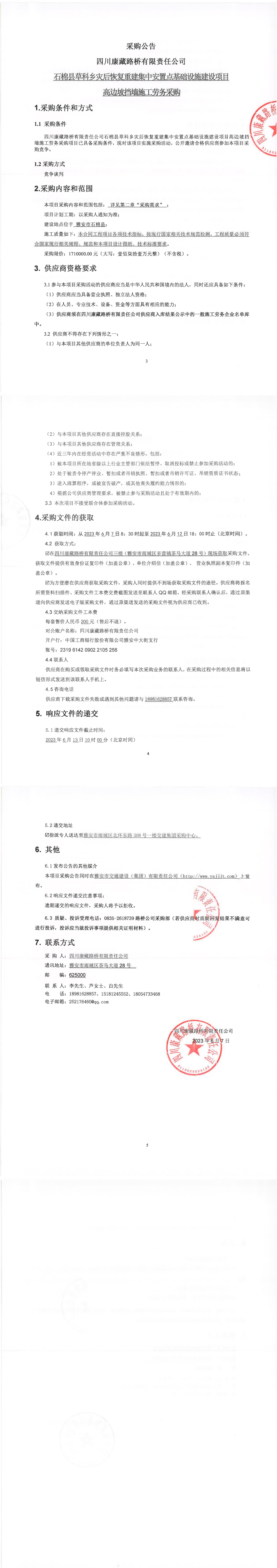 四川康藏路橋有限責(zé)任公司石棉縣草科鄉(xiāng)災(zāi)后恢復(fù)重建集中安置點(diǎn)基礎(chǔ)設(shè)施建設(shè)項目高邊坡?lián)鯄κ┕趧?wù)采購