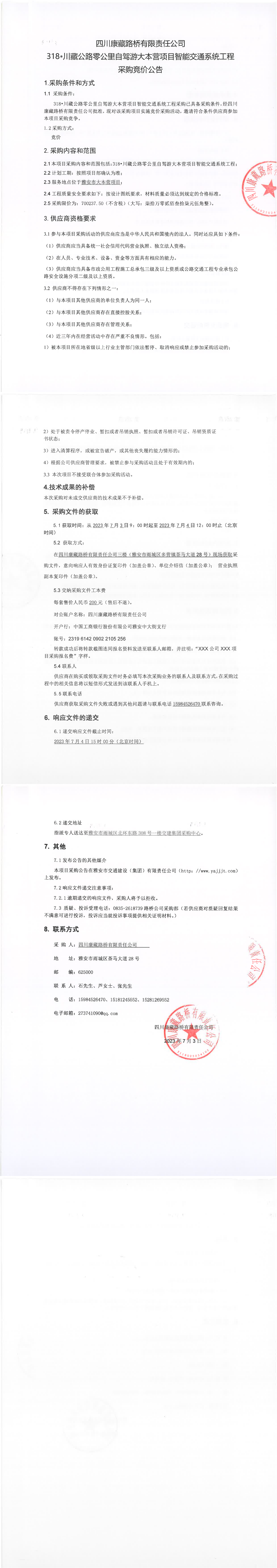 四川康藏路橋有限責(zé)任公司318·川藏公路零公里自駕游大本營(yíng)項(xiàng)目智能交通系統(tǒng)工程采購(gòu)競(jìng)價(jià)公告
