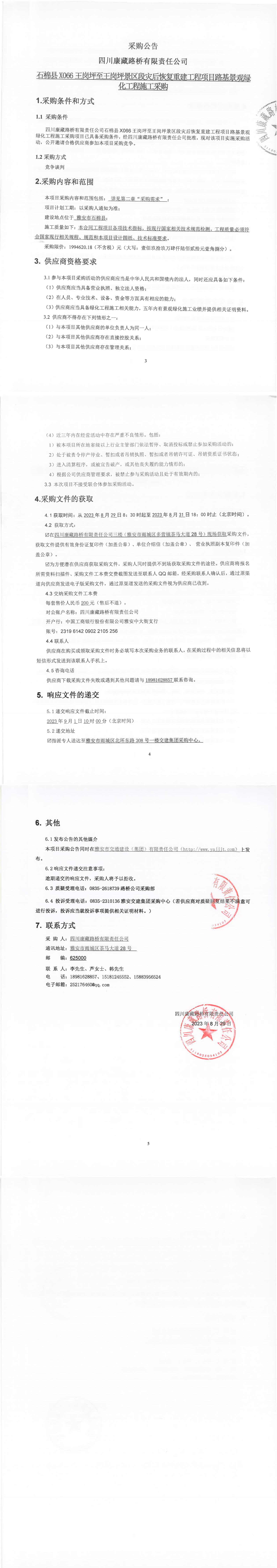 四川康藏路橋有限責任公司石棉縣X066王崗坪至王崗坪景區(qū)段災(zāi)后恢復重建工程項目路基景觀綠化工程施工采購公告