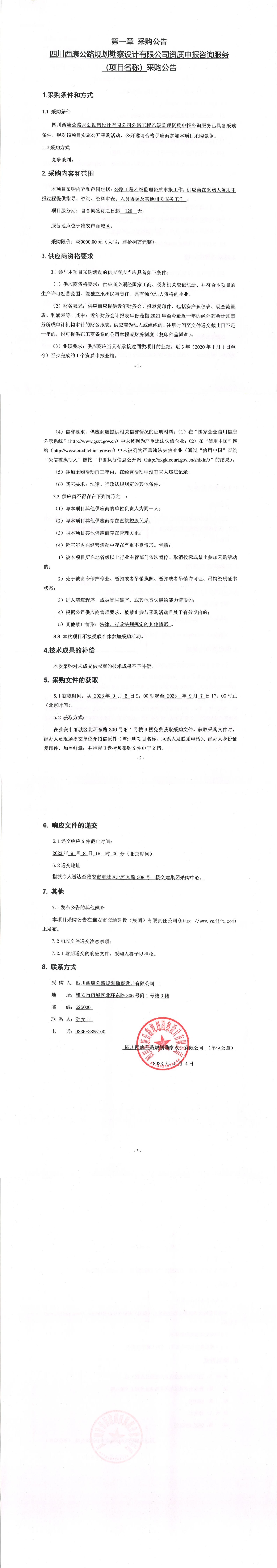 四川西康公路規(guī)劃勘察設計有限公司資質(zhì)申報咨詢服務(項目名稱)采購公告