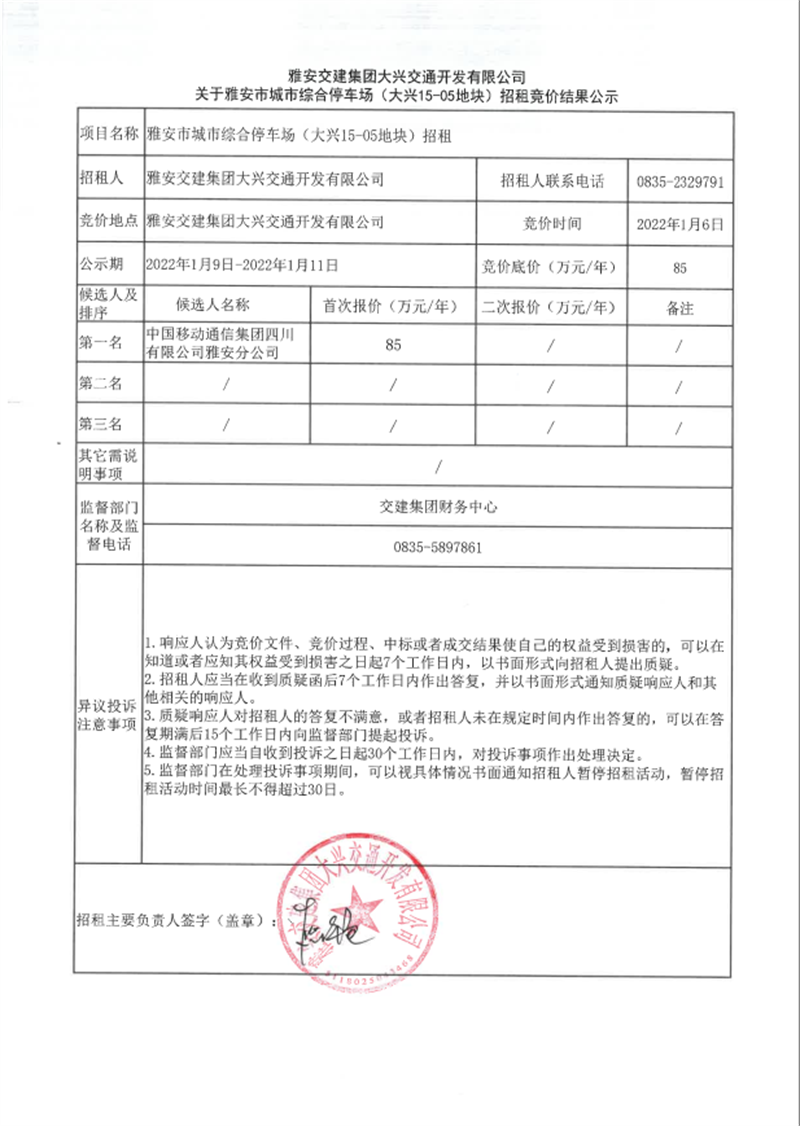 ´óÅdé_°l(f¨¡)¹«Ë¾êP(gu¨¡n)ÓÚÑŰ²ÊгÇÊоCºÏͣ܇ˆö£¨´óÅd15-05µØ‰K£©ÕÐ×⸂ƒr½Y(ji¨¦)¹ûµÄ¹«Ê¾