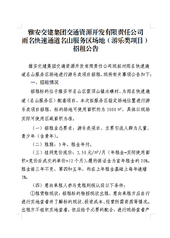 雅安交建集團(tuán)交通資源開發(fā)有限責(zé)任公司雨名快速通道名山服務(wù)區(qū)場(chǎng)地(游樂(lè)類項(xiàng)目)招租公告附件
