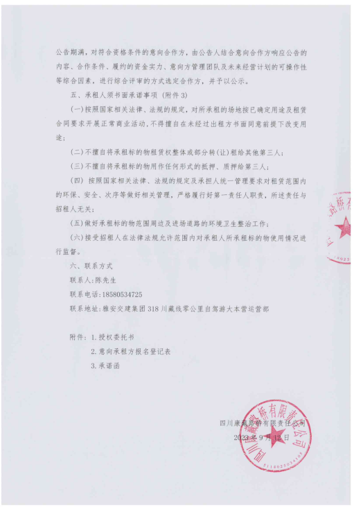 四川康藏路橋有限責任公司318·川藏線零公里自駕游大本營臨時用地臨時招租征集公告