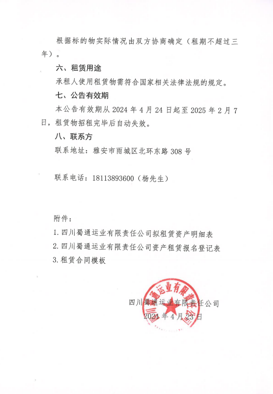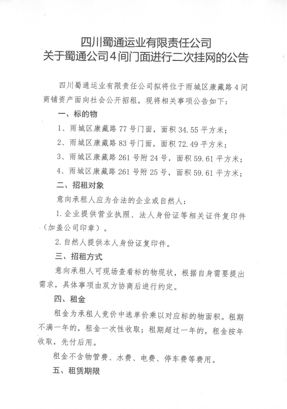 四川蜀通運業(yè)有限責任公司關于蜀通公司4間門面進行二次掛網(wǎng)的公告附件