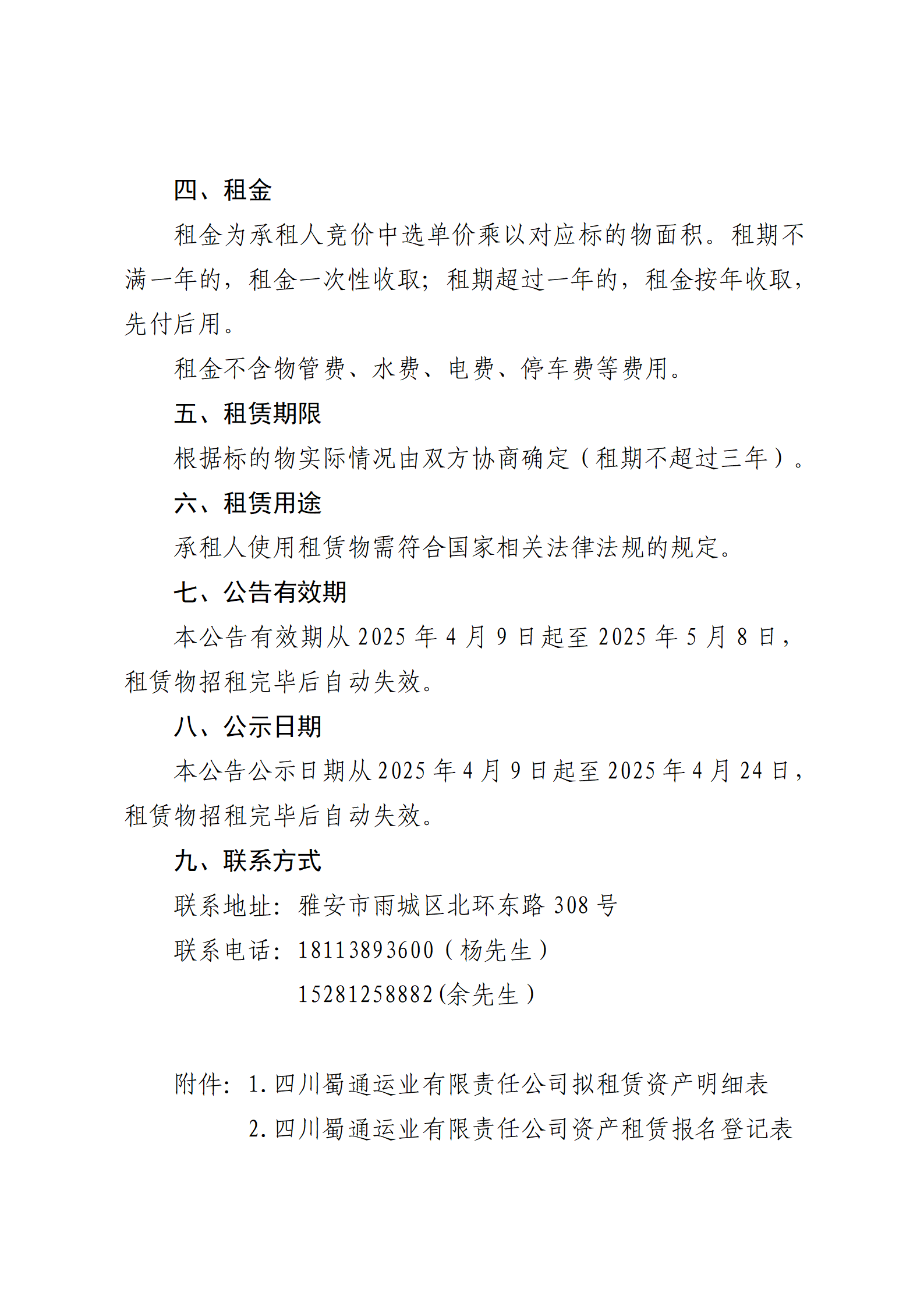 四川蜀通運業(yè)有限責任公司 關于康藏路261號附22號、平安路30號兩處門面進行掛網招租的公告