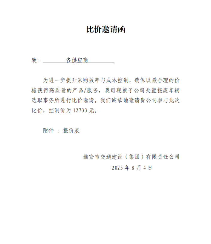 關(guān)于選取處置報(bào)廢車輛事務(wù)所的比價邀請函