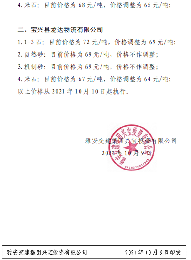 ÑŰ²½»½¨¼¯ˆF(tu¨¢n)ÅdŒš¹«Ë¾êP(gu¨¡n)ÓÚÕ{(di¨¤o)Õûɰʯ³ÉÆ·ÁÏäNÊÛƒr¸ñµÄ֪ͨ£¨2021.9.28£©