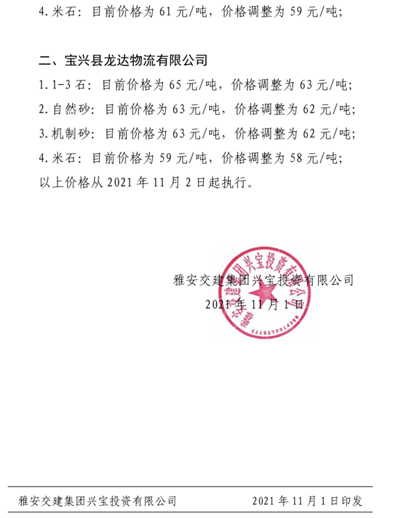 ÑŰ²½»½¨¼¯ˆF(tu¨¢n)ÅdŒš¹«Ë¾êP(gu¨¡n)ÓÚÕ{(di¨¤o)Õû³ÉÆ·ÁÏäNÊÛƒr(ji¨¤)¸ñµÄ֪ͨ£¨2021.11.2£©