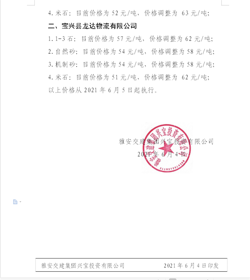 ÑŰ²½»½¨¼¯ˆF(tu¨¢n)ÔÆÊ¯¹«Ë¾É°Ê¯¹ÇÁÏäNÊÛƒr(ji¨¤)¸ñÇé›r±í£¨2021.6.20£©