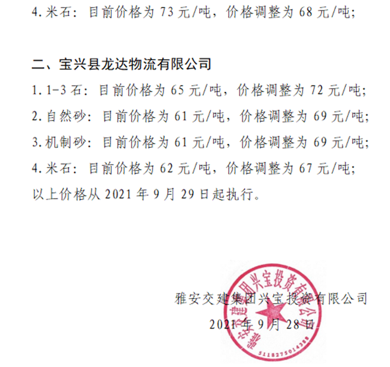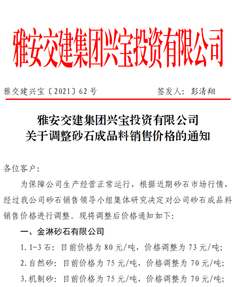 ÑŰ²½»½¨¼¯ˆF(tu¨¢n)ÅdŒš¹«Ë¾êP(gu¨¡n)ÓÚÕ{(di¨¤o)Õûɰʯ³ÉÆ·ÁÏäN(xi¨¡o)ÊÛƒr(ji¨¤)¸ñµÄ֪ͨ£¨2021.9.28£©